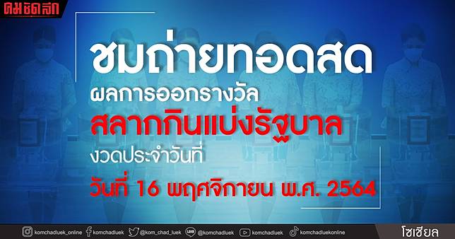 ผลการออกรางวลสลากกนแบงรฐบาล งวด 16 พฤศจกายน 2564 ณ อาคาร. งวดวนท 1 พฤศจกายน 2564.
