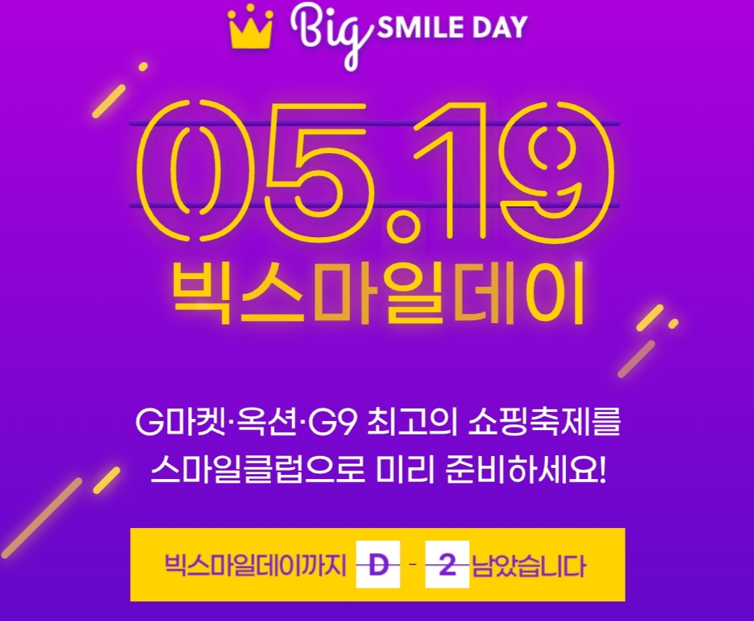 개요 편집 이베이 코리아가 운영하고 있는 오픈마켓 사이트로 모기업은 미국 의 이베이. 2021년 5월 빅스마일데이는 5월 10일을 시작으로 5월 18일까지 9일 간 진행됩니다. 스마일클럽 회원 전용 본 이벤트는 예고없이 변경되거나 조기종료 될.